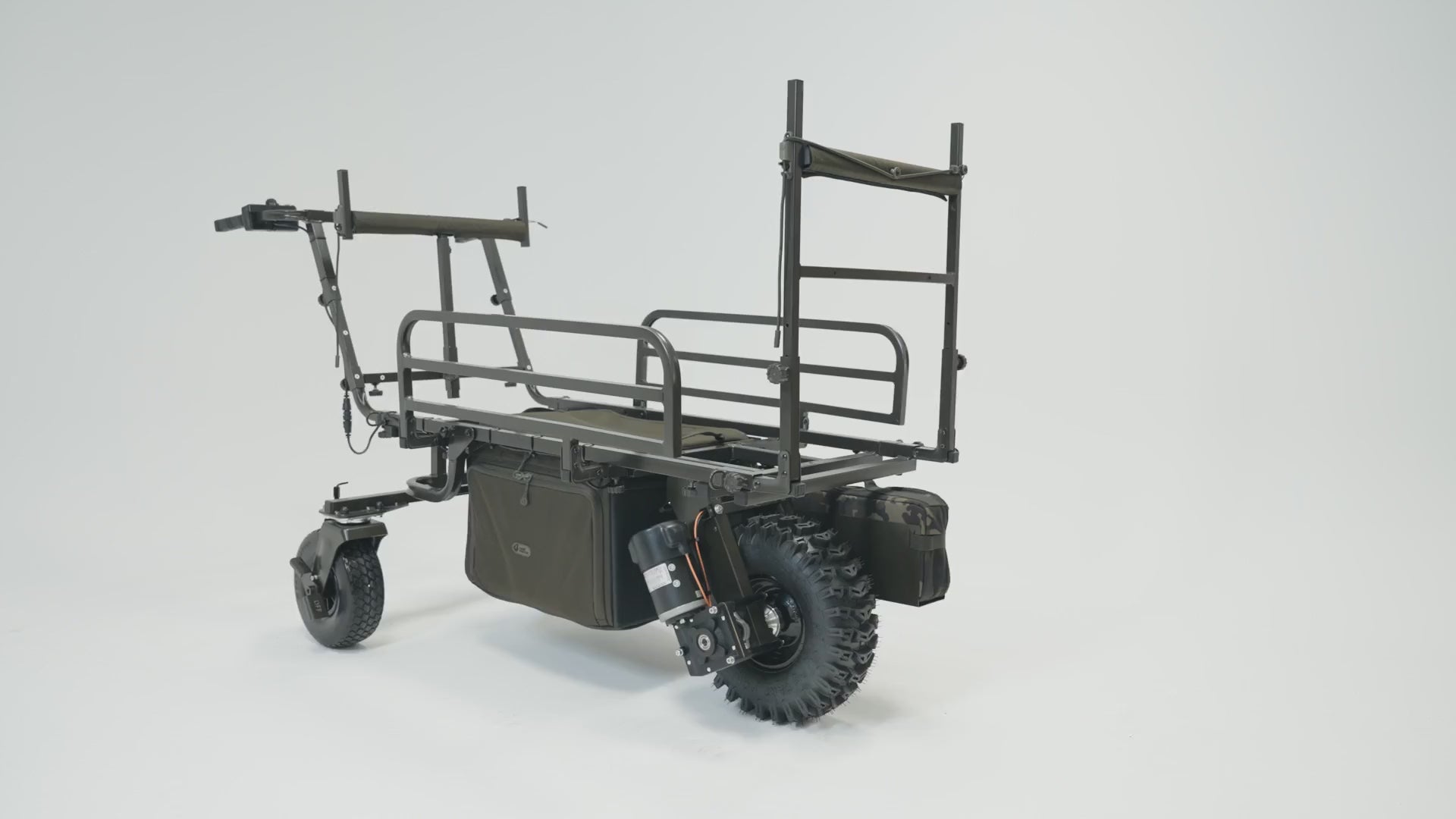 Glider Power Porter Dark Kamo + Bateria + Ładowarka to profesjonalny wózek wędkarski zaprojektowany do bezwysiłkowego transportu dużych ilości sprzętu wędkarskiego. Produkt posiada regulowaną konfigurację multi-point oraz zaawansowane systemy elektroniczne zapewniające optymalną kontrolę i niezawodność podczas karpiowych zasiadek.